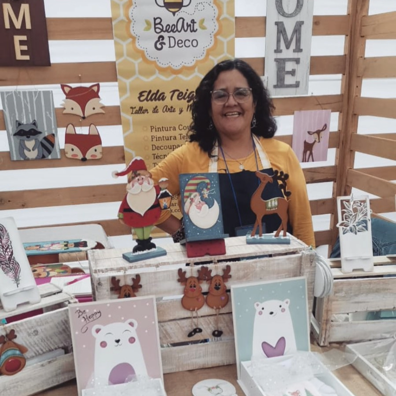 Nos dedicamos a la creación de piezas decorativas hechas a mano y pintadas en madera, que aportan calidez, identidad y alegría a los hogares, combinando diseño, color y oficio artesanal. Ofrecemos productos únicos que conectan emocionalmente con quienes nos eligen.